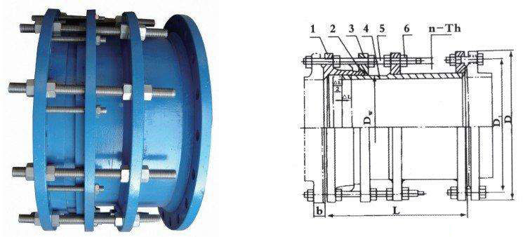 VSSFAF(CC2F)型可拆式雙法蘭傳力接頭:安裝在管道上后,根據(jù)所需的伸縮的伸縮距離進行限位,擰緊螺母,彈性密封圈在螺母壓蓋的作用下依靠相互斜度,緊壓在管子外圈起密封和連接作用,主要和管道閥門連接不但起到管道補償作用,更方便了閥門的維修及更換。